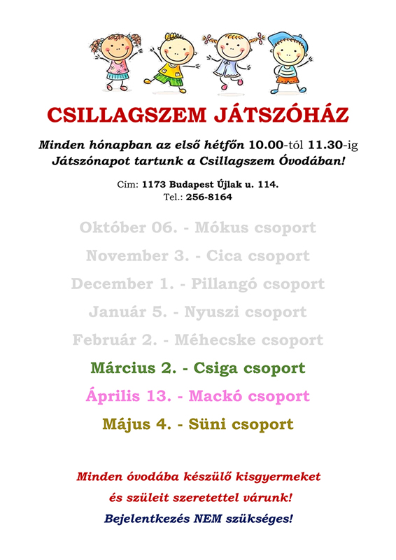 A Csillagszem Játszóház program megszervezése az óvodába készülőknek |